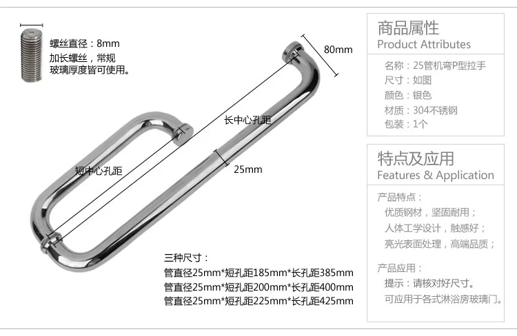 淋浴房玻璃門拉手尺寸有三種: